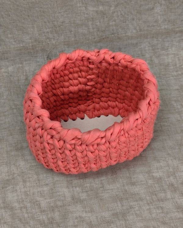 Χειροποιήτο καλάθι με ξύλινη βάση, πλεγμένο με μαλακό νήμα σε χρώμα ρόζ έντονο. Ιδανικό για αποθήκευση και οργάνωση δίαφορων αντικειμένων και τέλειο δώρο για τους αγαπημένους σας. Η διάσταση του είναι 16 Χ 14 εκ.