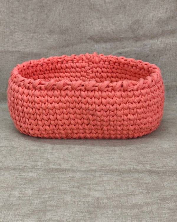 Χειροποιήτο καλάθι με ξύλινη βάση, πλεγμένο με μαλακό νήμα σε χρώμα ρόζ έντονο. Ιδανικό για αποθήκευση και οργάνωση δίαφορων αντικειμένων και τέλειο δώρο για τους αγαπημένους σας. Η διάσταση του είναι 31 Χ 14 εκ.