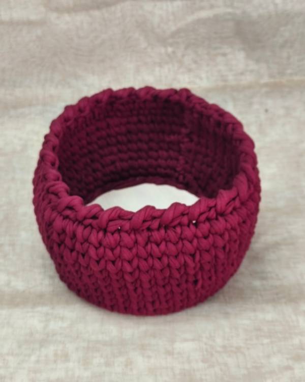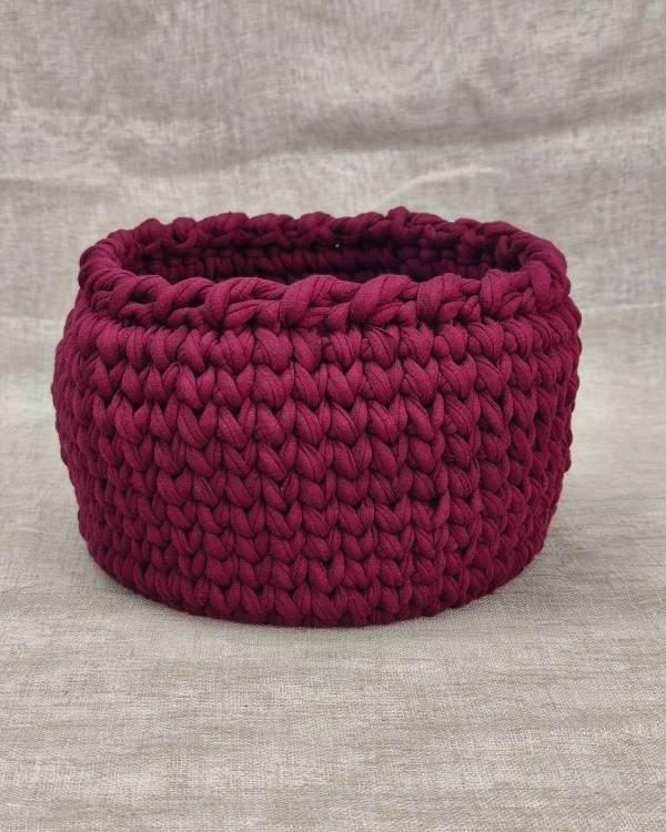 Χειροποιήτο καλάθι με ξύλινη βάση, πλεγμένο με μαλακό νήμα σε χρώμα μπορντό. Ιδανικό για αποθήκευση και οργάνωση δίαφορων αντικειμένων και τέλειο δώρο για τους αγαπημένους σας. Η διάσταση τους είναι 22 Χ 15 εκ.