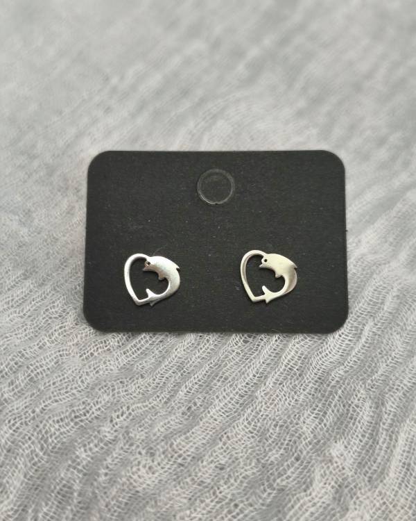 Σκουλαρίκια ατσάλινα καρδία με δελφίνι. Η δίασταση του στοιχείου είναι 1 Χ 1 εκ. Θα το παραλάβετε σε συσκευασία δώρου.