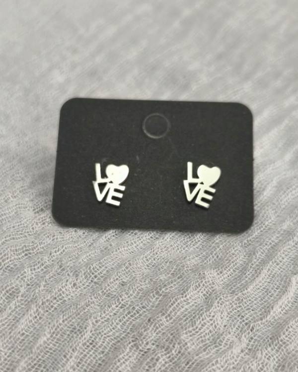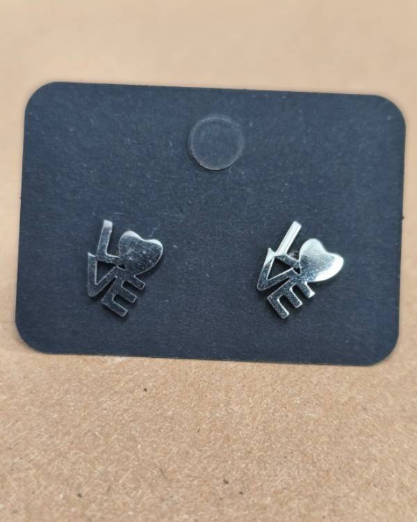 Σκουλαρίκια ατσάλινα LOVE . Η δίασταση του στοιχείου είναι 1 Χ 0,80 εκ. Θα το παραλάβετε σε συσκευασία δώρου.