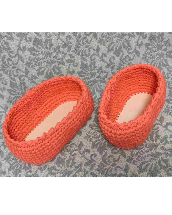 Χειροποιήτα καλάθια με ξύλινη βάση, πλεγμένα με μαλακό νήμα σε χρώμα ρόζ έντονο. Ιδανικό για αποθήκευση και οργάνωση δίαφορων αντικειμένων και τέλειο δώρο για τους αγαπημένους σας. Η διάσταση τους είναι 36 Χ 14 εκ το μεγάλο και 28 Χ 14 εκ το μεσαίο.