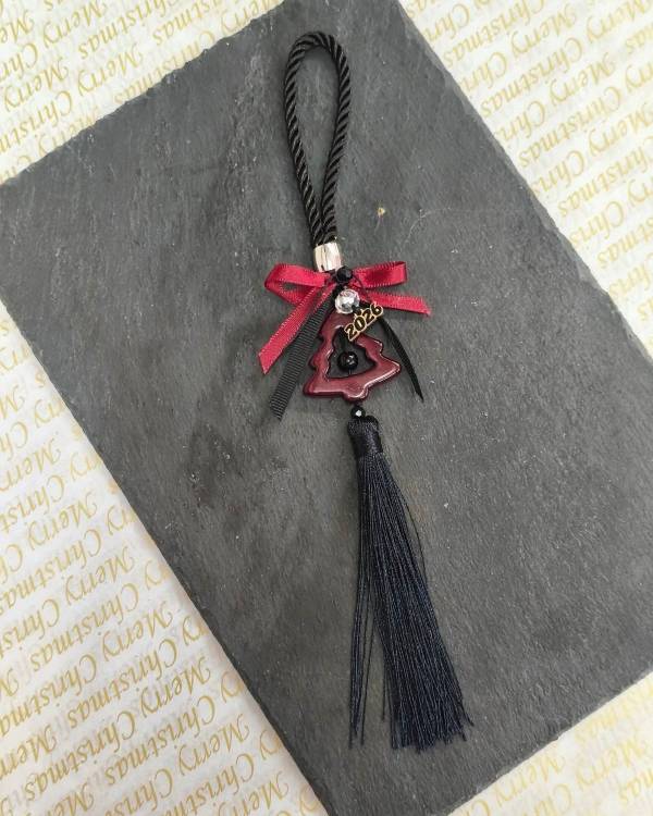 Χειροποίητο γούρι, με στοιχείο δέντρο κόκκινο ΑΧΑΤΗ, διακοσμημένο με κορδελες, με φούντα γκρί και μεταλικό στοιχείο 2026. Η δίασταση του είναι, 4 Χ 4 εκ το στοιχείο και το μάκρος που έχει το γούρι είναι 28 εκ. Θα το παραλάβετε σε συσκευασία δώρου.