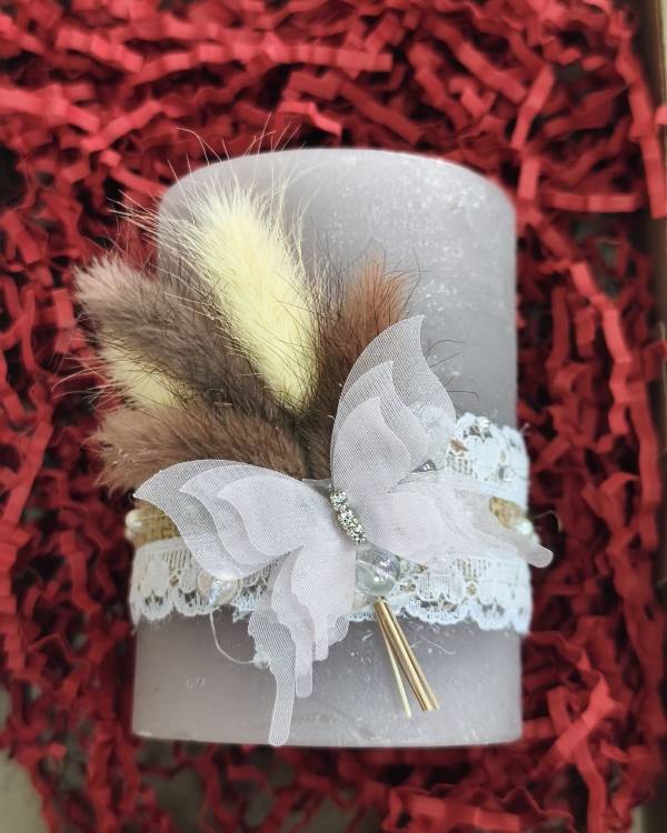 Χειροποίητο κερί επιτραπέζιο σε απαλό μώβ, με αποξυραμένα και πεταλούδα. Η διάσταση του είναι 10 Χ 7 εκ. Θα τ0 παραλάβετε σε συσκευασία δώρου.