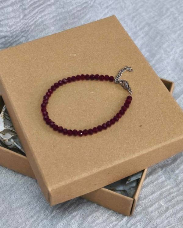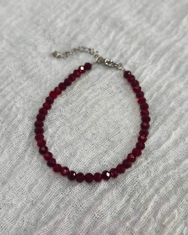 Χειροπιήτο βραχίολι με χάντρες κρύσταλλα σε κόκκινο χρώμα, περασμένες σε ατσαλόσυρμα και με κούμπωμα με αλυσιδάκι για αυξομείωση. Το μάκρος του είναι 16 εκ. Θα το παραλάβετε σε συσκευασία δώρου.