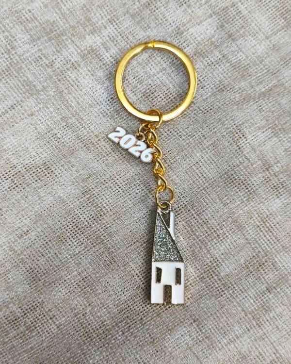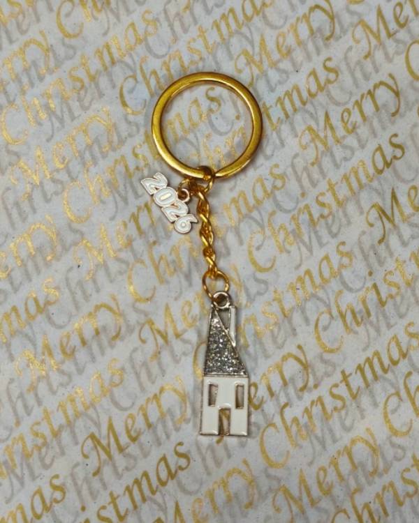 Γούρι μπρελόκ, με μεταλλικό στοιχείο χριστουγεννίατικο σπιτάκι λευκό και το 2026. Η δίασταση του είναι 3,5 Χ 1,2 εκ και όλο μαζί το μάκρος είναι 9 εκ.