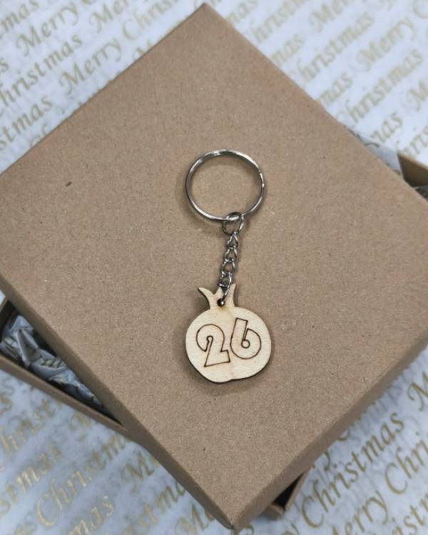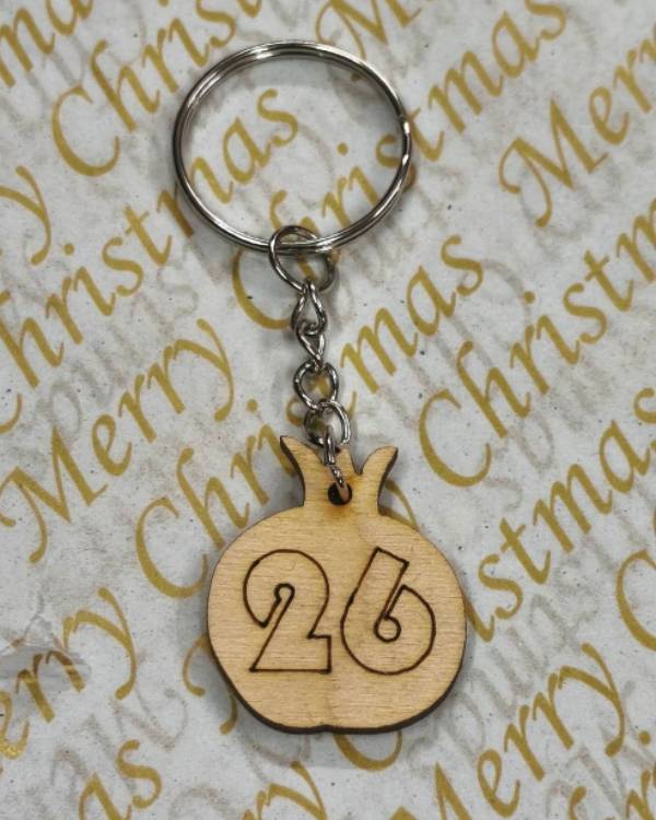 Χειροποιήτο μπρελόκ με ξύλινο στοιχείο ρόδι με το 26 και με κρικάκι ασημί. Η διάσταση του είνα 3 Χ 2,5 εκ και όλο το μάκρος είναι 8 εκ. Δωράκι για τον εαυτό σας ή για καποιόν αγαπημένο σας. Θα το παραλάβετε σε συσκευασία δώρου.