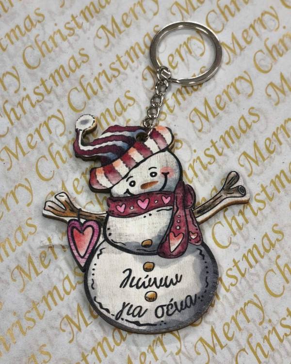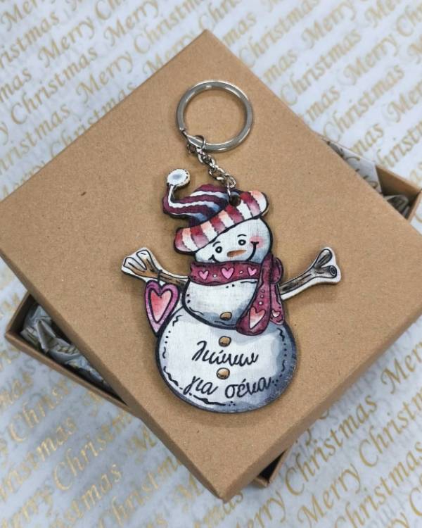 Χειροποιήτο μπρελόκ με ξύλινο στοιχείο χιονάθρωπος και με κρικάκι ασημί. Η διάσταση του είνα 9 Χ 8 εκ και όλο το μάκρος είναι 13 εκ. Δωράκι για τον εαυτό σας ή για καποιόν αγαπημένο σας. Θα το παραλάβετε σε συσκευασία δώρου.