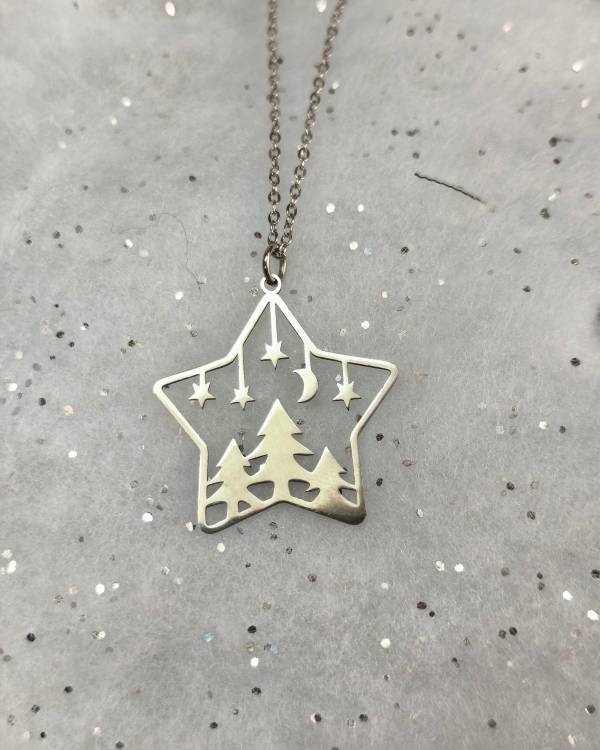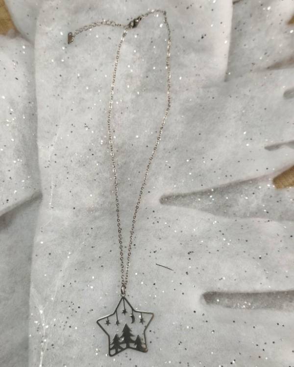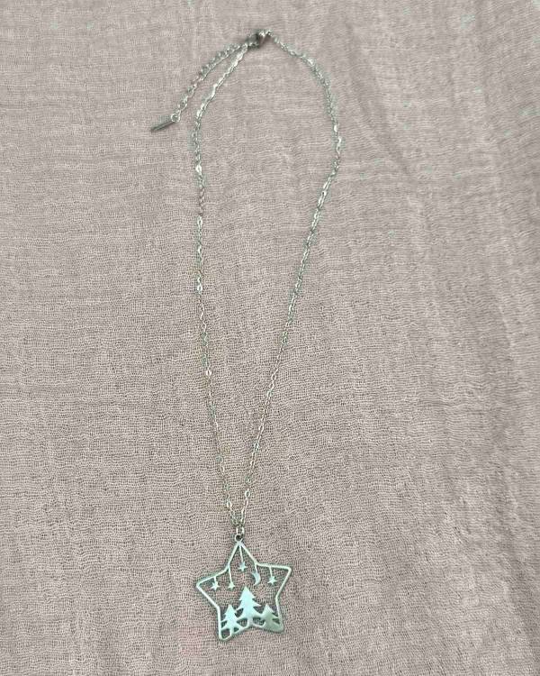 Κολίε ατσάλινο με αλυσίδα και στοιχείο αστέρι σε ασημί χρώμα. Η δίαστασή του είναι 21 εκ η αλυσίδα , το στοιχείο 3,50 Χ 3,50 εκ και όλο μαζί είναι 24,50 εκ. Ένα υπέροχο κολίε για όλες τις ώρες για σας και για τους αγαπημένους σας. Θα το παραλάβετε σε συσκευασία δώρου.