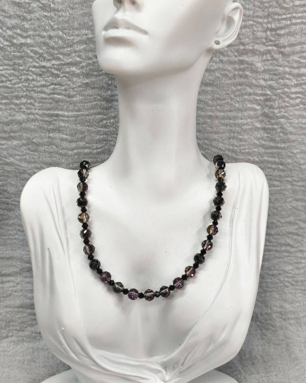 Χειροποιήτο κολίε με πολύχρωμα ιριδίζουσα κρύσταλλα. Περασμένα σε ατσαλόσυρμα΄διαθέτει και αλυσιδάκι για αυξομείωση. Η δίασταση ρου έιναι 28 εκ. Θα το παραλάβετε σε συσκευασία δώρου.