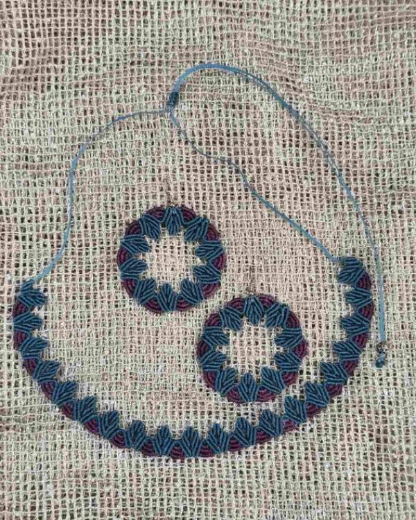 Χειροποιήτο σέτ κολιέ μακραμέ και σκουλαρίκια μακραμέ, πλεγμένο με κηροκλωστή πετρόλ και ρόζ σκούρο. Η δίασταση που έχει το σχέδιο του κολιε είναι 26 εκ, έχει κορδόνι αυξομείωσης και τα σκουλαρίκια έχουν 5,5 Χ 5,5 εκ και το μάκρος του μαζί με το ατσάλινο γαντζάκι είναι 7 εκ. Θα το παραλάβετε σε συσκευασία δώρου.